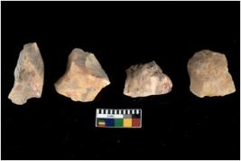 | Description / विवरण | There are n 4 of utilized worked cores and show irregular scar pattern on both dorsal and ventral side. Two have broken tip. |
