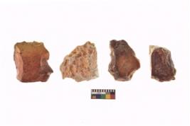 | Description / विवरण | There are n 4 of utilized worked cores and show irregular scar pattern on both dorsal and ventral side. Two have a broken tip. |