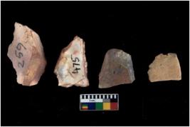 | Description / विवरण | There are n 4 of utilized worked cores and show irregular scar pattern on both dorsal and ventral side. Two have flat base and broken tip. |