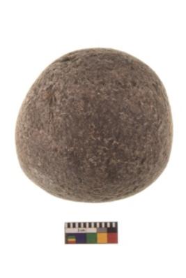 | Description / विवरण | Specimen of a spherical shaped hammer stone with battered surface |