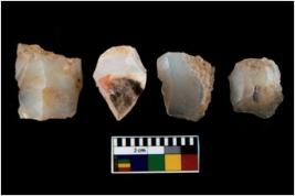 | Description / विवरण | There are n 4 utilized flake cores. There are multi directional irregular scar pattern on them. One has sharp edge and three have blunted edges. |