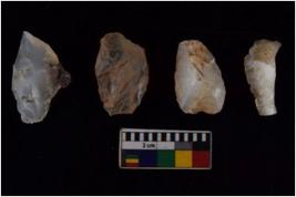| Description / विवरण | There are n-4 of intact utilized flakes made up of Chalcedony. Some of them have bulge of percussion and some are flat flakes. |