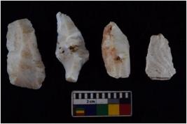 | Description / विवरण | There are n-4 of intact utilized flakes made up of Chalcedony. Some of them have bulge of percussion and some are flat flakes. |