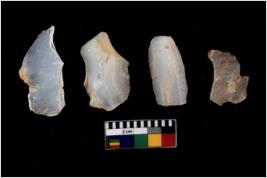 | Description / विवरण | There are n 4 of utilized worked cores and have multidirectional scar pattern. Three are tapering at one end. |