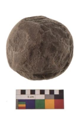 | Description / विवरण | Specimen of a roughly rounded shaped hammer stone with battered surface |