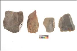 | Description / विवरण | There are n 4 flakes tool; there are multidirectional irregular scar pattern on them; made of short flakes and all four have tapering edges. |