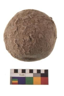 | Description / विवरण | Specimen of a spherical shaped hammer stone with battered surface |