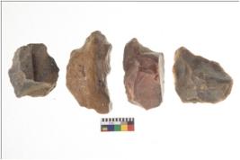 | Description / विवरण | There are n 4 flakes tool; there are multidirectional irregular scar pattern on them; made of short flakes and all four have tapering edges. |