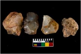 | Description / विवरण | There are n 4 objects; among them three are made up of quartz and one is chert. All are having flat basealong with tip pointed, tapering at one end. |