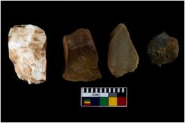 | Description / विवरण | There are n 4 object; among them three are made up of quartz and one is chert which has flaking mark, two of the core have coarse base. One of them is trapeze in shape. |