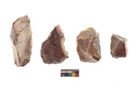 | Description / विवरण | There are n 4 of utilized worked cores and show irregular scar pattern on both dorsal and ventral side. One is tapering at one end and three have a broken tip. |