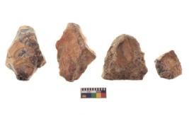 | Description / विवरण | There are n 4 of utilized worked cores and show irregular scar pattern on both dorsal and ventral side. Three are tapering at one end while one has a flat base. |