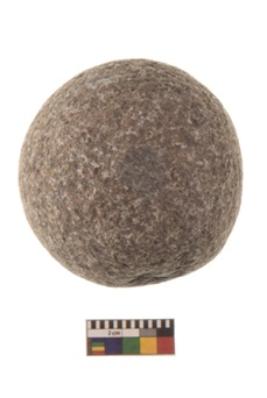 | Description / विवरण | Specimen of a spherical shaped hammer stone with battered surface |