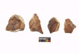 | Description / विवरण | There are n 4 of utilized worked cores and show irregular scar pattern on both dorsal and ventral side. Three are tapeirng at one end. |
