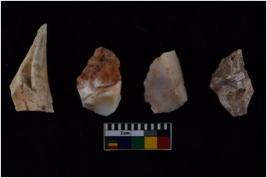 | Description / विवरण | There are n 4 flake cores. All of them are fully fluted flake cores without any trace of crested ridge flakes. Some have blunted edges and some have round edges. Few have flat base. |