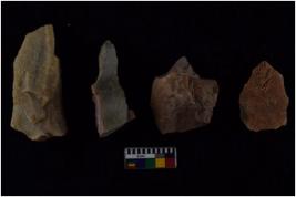 | Description / विवरण | There are n-4 of intact utilized flakes made up of Chalcedony. Some of them have bulge of percussion and some are flat flakes. |