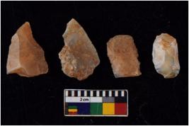 | Description / विवरण | There are n 4 flakes tool; there are flakes with sides trimmed, Marks of secondary flaking are present on the both the faces. |