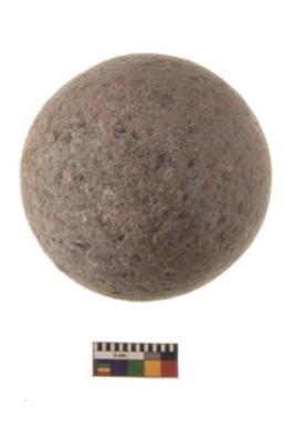 | Description / विवरण | Specimen of a spherical shaped hammer stone with battered surface |