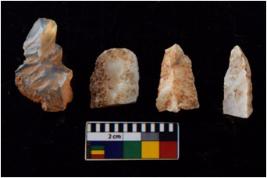 | Description / विवरण | There are n 4 flakes tool; there are flakes with sides trimmed, Marks of secondary flaking are present on the both the faces. The dorsal is relatively flat. |