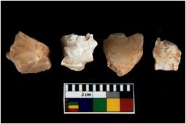| Description / विवरण | There are n 4 utilized flake cores. There are multi directional irregular scar pattern on them. |