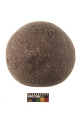| Description / विवरण | Specimen of a spherical shaped hammer stone with battered surface |