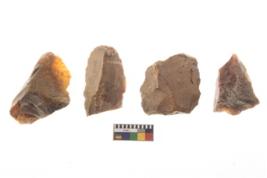 | Description / विवरण | There are n 4 of utilized worked cores and show irregular scar pattern. Two are tapering at one end while one has a broken tip. |
