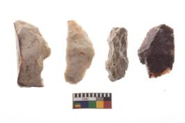 | Description / विवरण | There are n 4 of utilized worked cores and show irregular scar pattern on both dorsal and ventral side. Three are elongated in shape. |