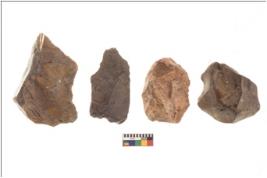 | Description / विवरण | There are n 4 flakes tool; there are multidirectional irregular scar pattern on them; made of short flakes and all four have tapering edges. |