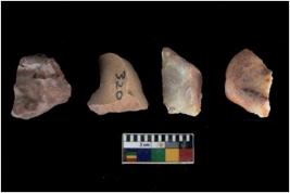 | Description / विवरण | There are n 4 of utilized worked cores and show irregular scar pattern on both dorsal and ventral side. Two have a broken tip. |