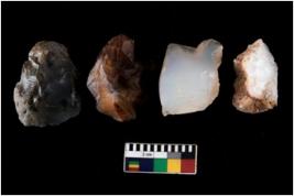 | Description / विवरण | There are n 4 ; worked utilized flakes; there are multidirectional irregular scar pattern on both dorsal and ventral face of the flakes. One of them is tapering at one end. All are having sharp edges. |