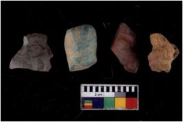 | Description / विवरण | There are n 4 of utilized worked cores and show multidirectional irregular scar pattern on both dorsal and ventral sides. Two have a flat base. |