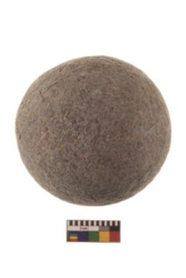 | Description / विवरण | Specimen of a spherical shaped hammer stone with battered surface |