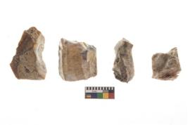 | Description / विवरण | There are n 4 of utilized worked cores and show irregular scar pattern on both dorsal and ventral side. They have a broken tip. |