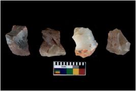 | Description / विवरण | There are n 4 of utilized worked cores and show irregular scar pattern on both dorsal and ventral side. Three have broken tip. |
