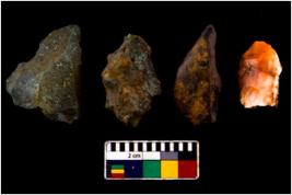 | Description / विवरण | There are n 4 objects; all are tapering at one end, two chert are having greenish color and one chert has pen knife shape. |