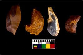 | Description / विवरण | There are n 04 objects; among them three are chert and one is quartz. Two are flake core and all are having pen point. |