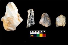 | Description / विवरण | There are n 04 objects; among them one is bigger comparatively, one can be characterised as blade core, two are fluted core, all are well preserved. |
