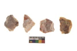 | Description / विवरण | There are n 4 of utilized worked cores and show irregular scar pattern. Two are tapering at one end and two have a broken tip. |
