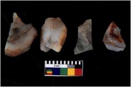 | Description / विवरण | There are n 4 of utilized worked cores and show scar pattern. One has a flat base. |
