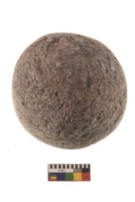 | Description / विवरण | Specimen of a spherical shaped hammer stone with battered surface |