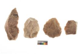 | Description / विवरण | There are n 4 of utilized worked cores and show irregular scar pattern. One is tapering at one end. |
