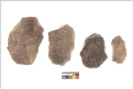 | Description / विवरण | There are n 4 flakes tool; there are large flakes with sides trimmed, Marks of secondary flaking are present on the both the faces.The dorsal is relatively flat. |