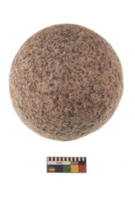 | Description / विवरण | Specimen of a spherical shaped hammer stone with battered surface |