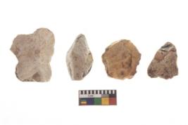 | Description / विवरण | There are n 4 of utilized worked cores and show irregular scar pattern. Two are tapering at one end. |