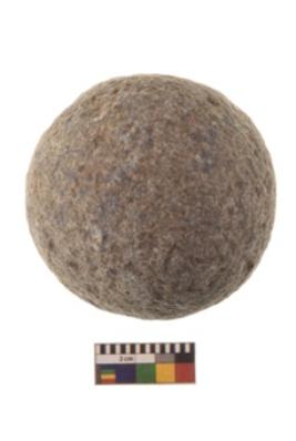 | Description / विवरण | Specimen of a spherical shaped hammer stone with battered surface |