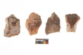 | Description / विवरण | There are n 4 of utilized worked cores and show irregular scar pattern on both dorsal and ventral side. They have a flat base. |