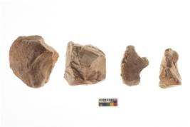 | Description / विवरण | There are n 4 of utilized worked cores and show irregular scar pattern on both dorsal and ventral side. Two have a broken tip. |
