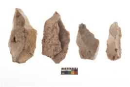 | Description / विवरण | There are n 4 of utilized worked cores and show irregular scar pattern. They are tapering at one end. |