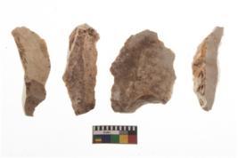 | Description / विवरण | There are n 4 of utilized worked cores and show irregular scar pattern. Three are elongated in shape. |