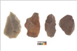 | Description / विवरण | There are n 4 flakes tool; there are multidirectional irregular scar pattern on them; made of short flakes and all four have tapering edges. |
